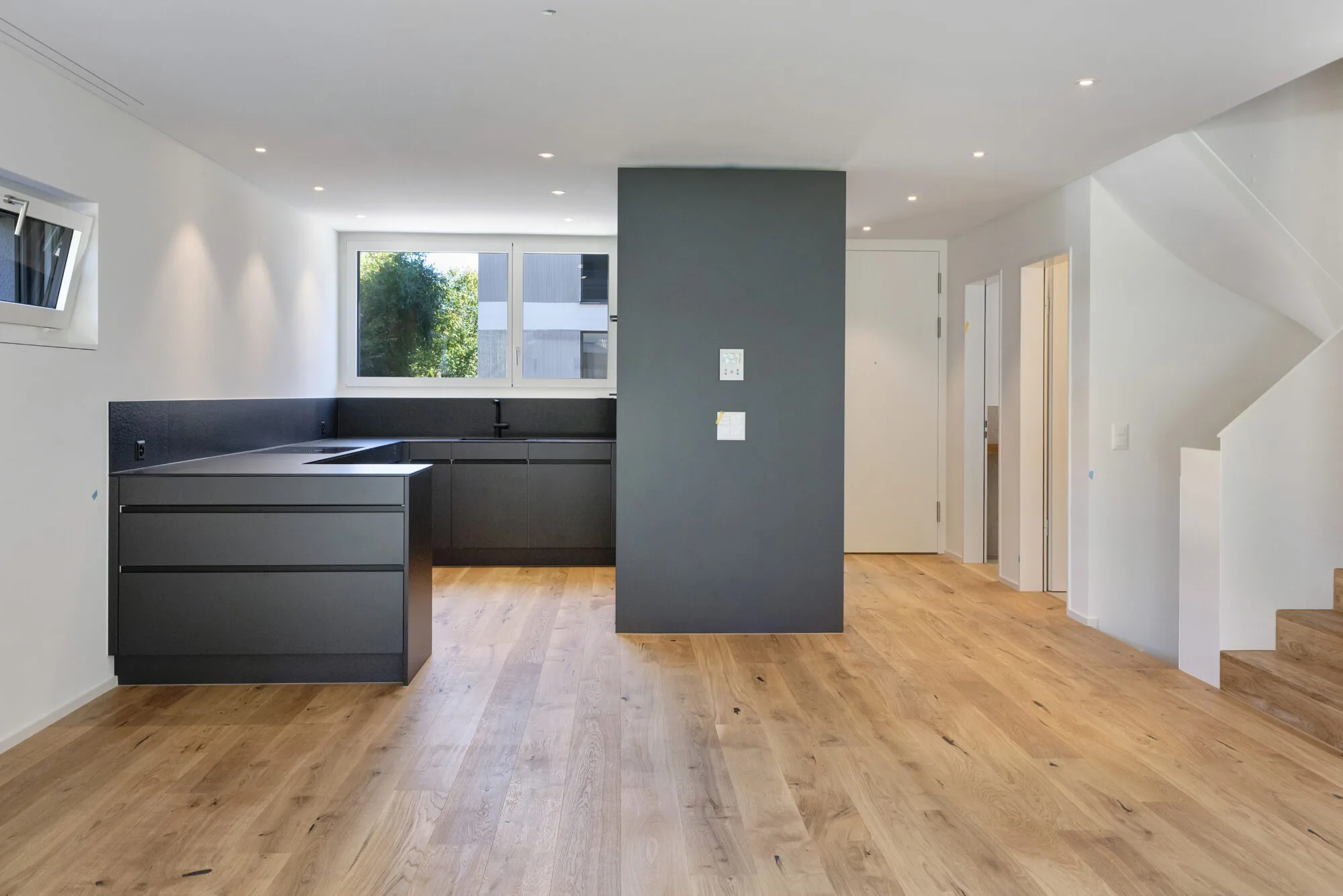 Die Reiheneinfamilienhäuser überzeugen durch eine durchdachte Raumaufteilung mit einem grosszügigen Erdgeschoss samt Terrasse, drei Schlafzimmern im Obergeschoss sowie einem Studio im Dachgeschoss. Zudem gibt es einen direkten Zugang von der Tiefgarage zum Haus.